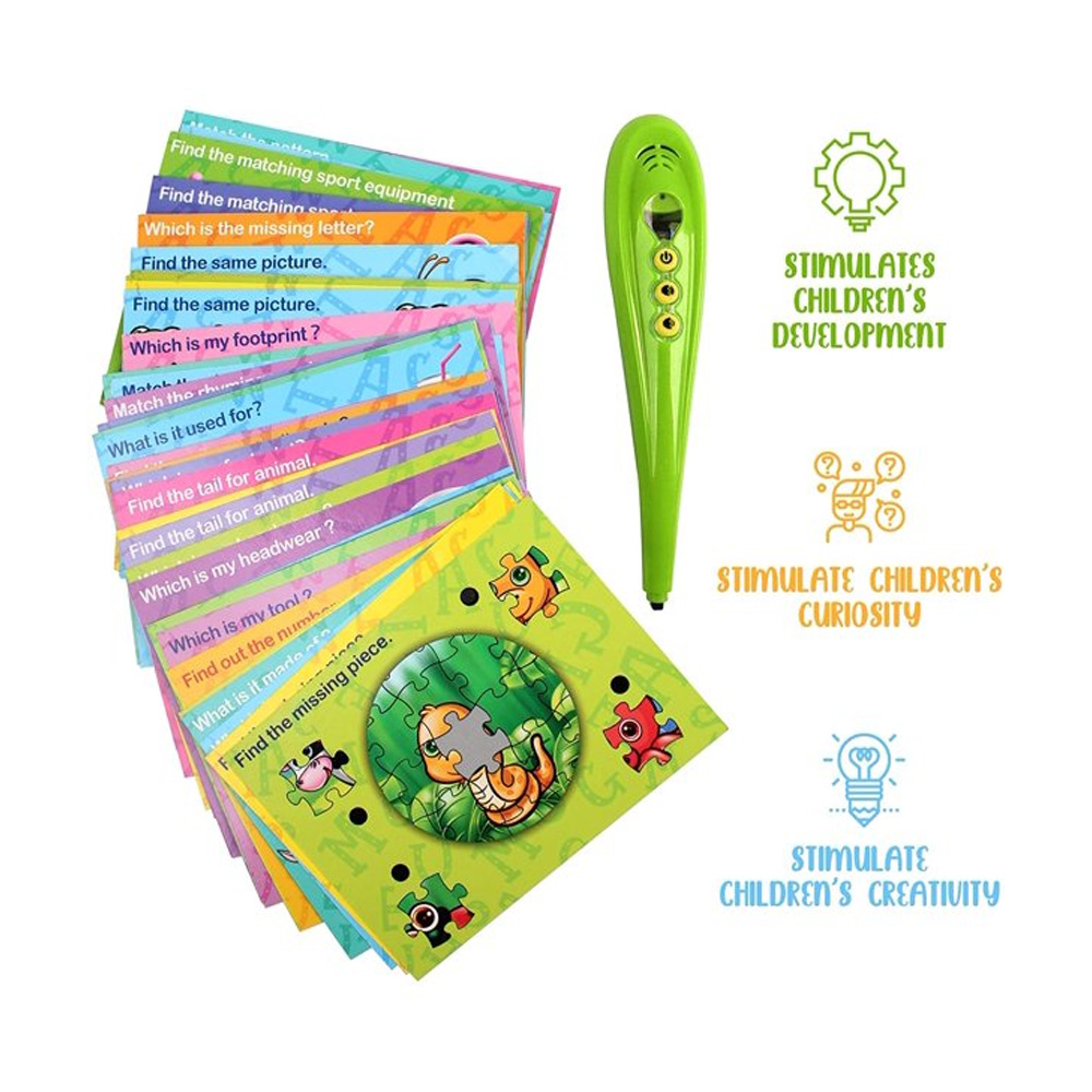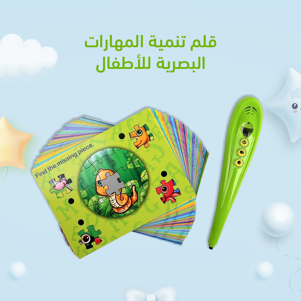 عشان تحبب أطفالك في التعليم لازم تتبع معاهم طرق مختلفة، القلم الذكي ومعاه 50 كارت تعليمي هيساعدك في تعلسم اطفالك الحروف والارقام والكلمات وحاجات تانية كتير وهيساعد في تنمية مهارات طفلك البصرية، أطفالك هتحب التعليم