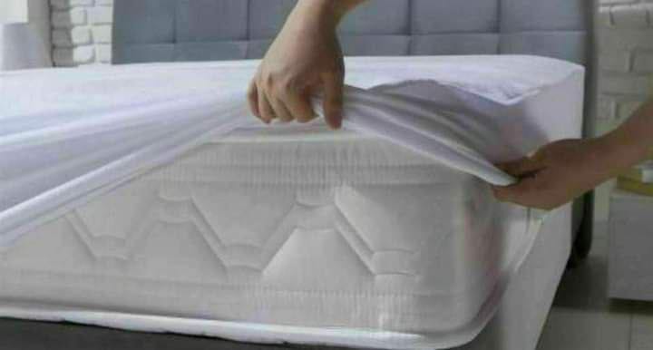 كفر المرتبه الواقي الأبيض هيحمي مرتبتك من التراب، بأستيك يعني مش هتزحلق ولا هيقع، الخامة قطن يعني راحة وانتي نايمة وخامة متعرقش.